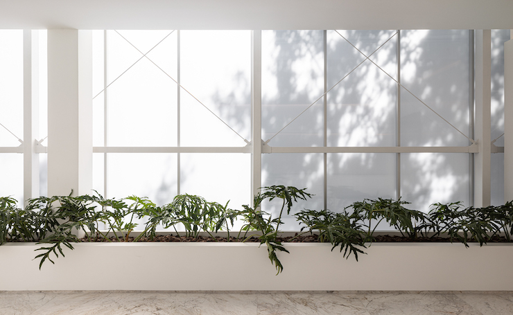 Na Galeria Laguna, por exemplo, o uso do vidro acidato e do policarbonato alveolar na fachada reforça essa abordagem: esses materiais oferecem excelente desempenho térmico e visual, trazendo uma estética contemporânea. O policarbonato da empresa israelense Danpal foi utilizado visando elevar a durabilidade da construção e conferir ao edifício um visual translúcido, otimizando ainda mais o uso da luz natural.