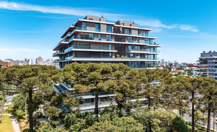 Um exemplo é o KAÁ, primeiro empreendimento de Curitiba projetado pelo escritório Bernardes Arquitetura, e localizado em um terreno de esquina com desnível no Bigorrilho. Em vez de alterar o relevo, o projeto escalona os volumes, integra jardins suspensos e propõe uma praça-jardim central com mais de 3.500 m². Assim, a arquitetura se molda à natureza e a transforma em experiência. Por sua vez, os imóveis-arte PINAH e ROC foram concebidos com a mesma atenção ao entorno.