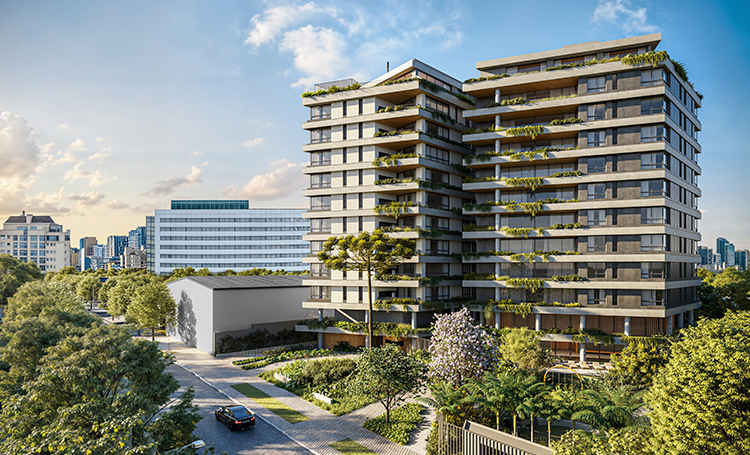 Um projeto tão singular como o ZAHI conta com uma geometria elegante, com contornos paralelos desenhados para acompanhar o ritmo do sol. O empreendimento amplia o olhar através de novos ângulos, para os moradores se apaixonarem pelo bairro Batel todos os dias.